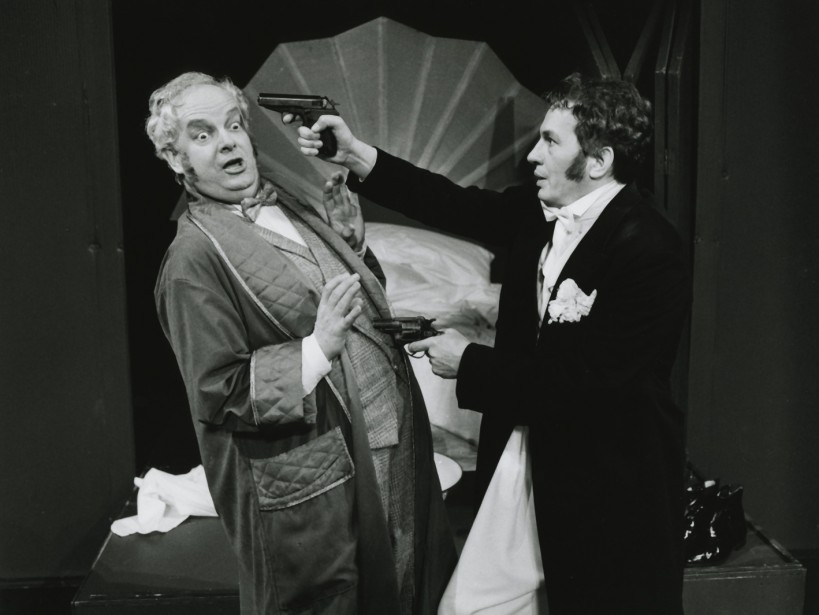 Ogląda przedstawienie sztuki Zygmunta Nowakowskiego Gałązka rozmarynu.